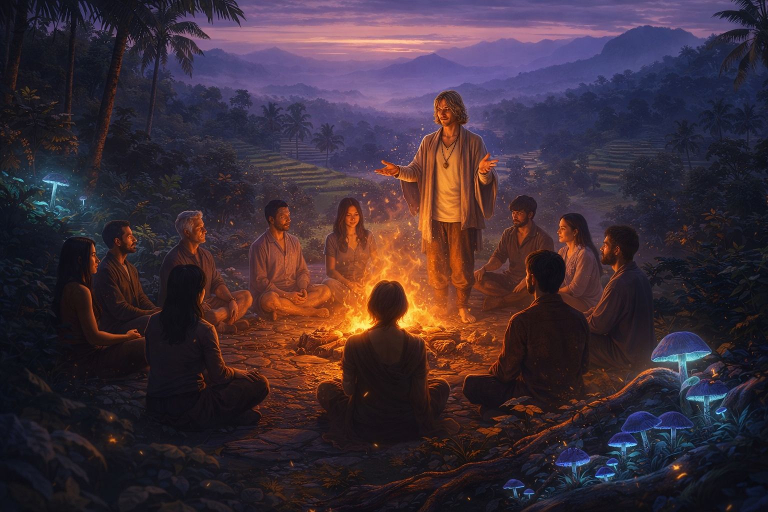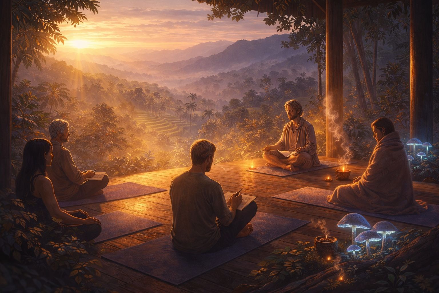 His work ultimately comes to life inside intimate in-person retreats, where participants step away from noise and performance to engage in deep inner work, ceremony, and integration within a carefully held container.